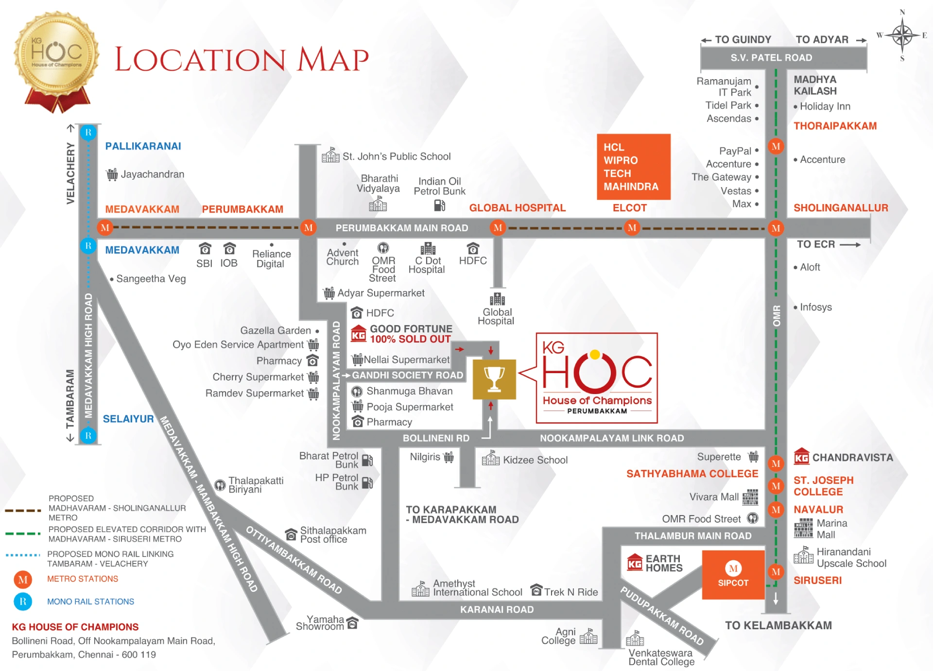 • KG House of Champions is a premium residential property located in a fast-growing and vibrant area of Perumbakkam, near Shollinganallur, OMR.